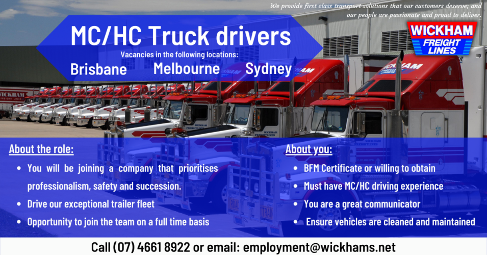 MC Truck drivers – MEL, BNE, SYD-25306 ( Wickham Freight Lines )