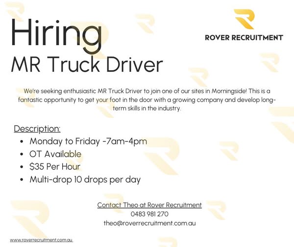MR Truck Driver Wanted ( Rover Rrecruitment )