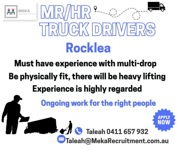 Job Tags:MC Licence, Meka Recruitment, MR Licence, ROCKLEA.