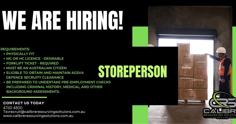 Storeperson Operations Manager ( Calibre Resourcing Solutions )