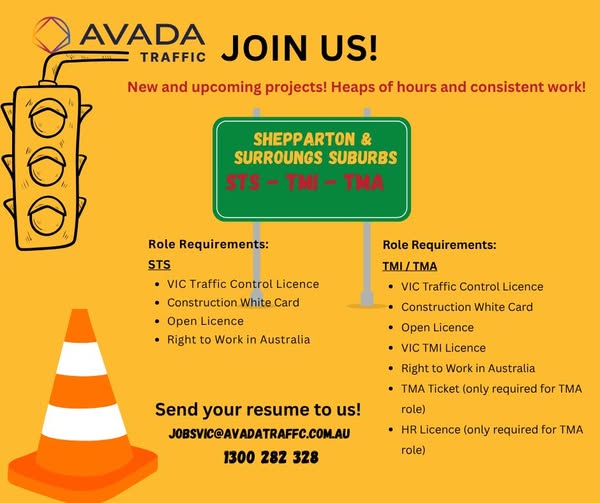 Traffic Controller sought for Shepparton & surrounds, requiring STS, VIC Traffic Control Licence, and Construction White Card.