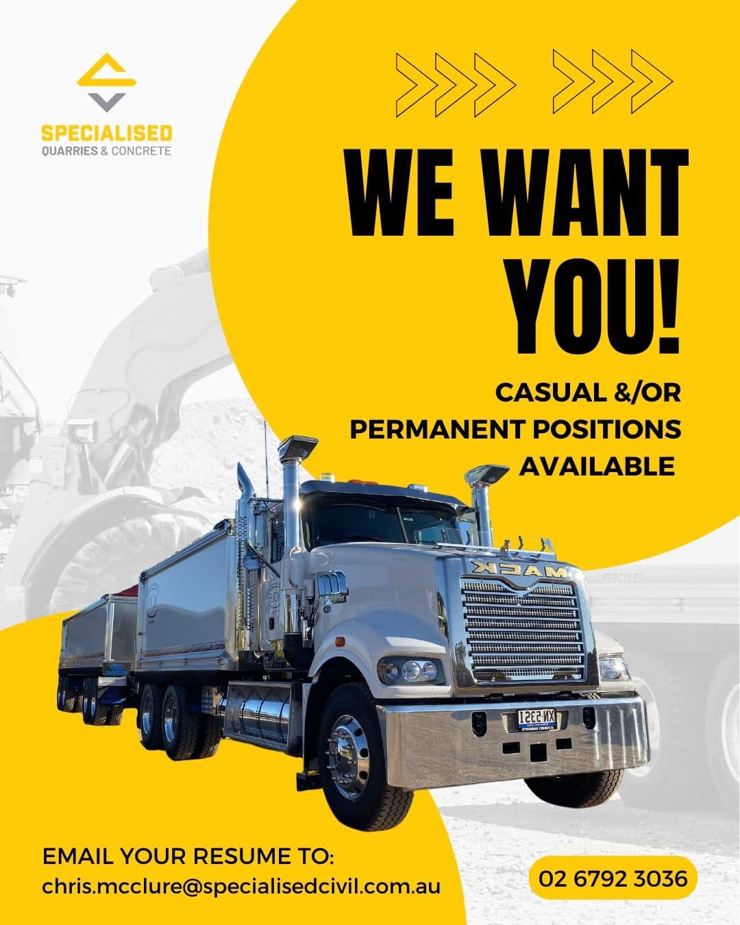 TRUCK & DOG DRIVERS WANTED ( Specialised Quarries & Concrete Pty Ltd )