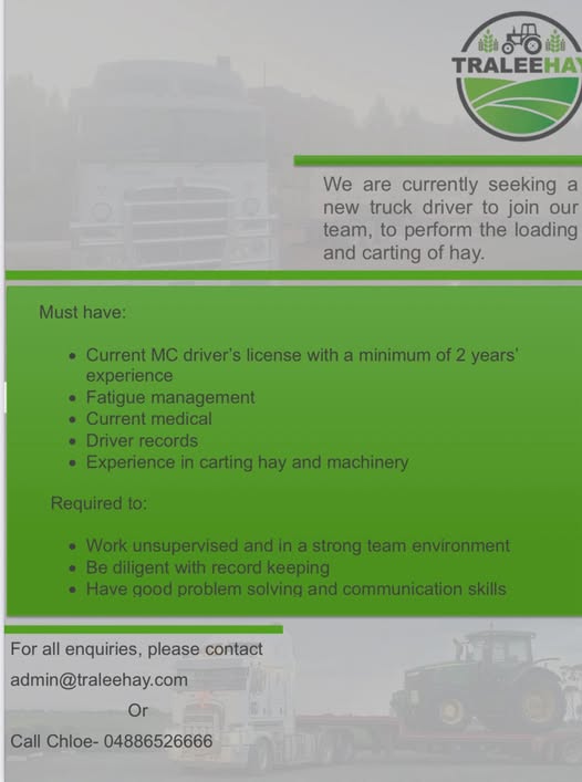 For all enquiries, please contact admin@traleehay.com or call Chloe – 0488652666