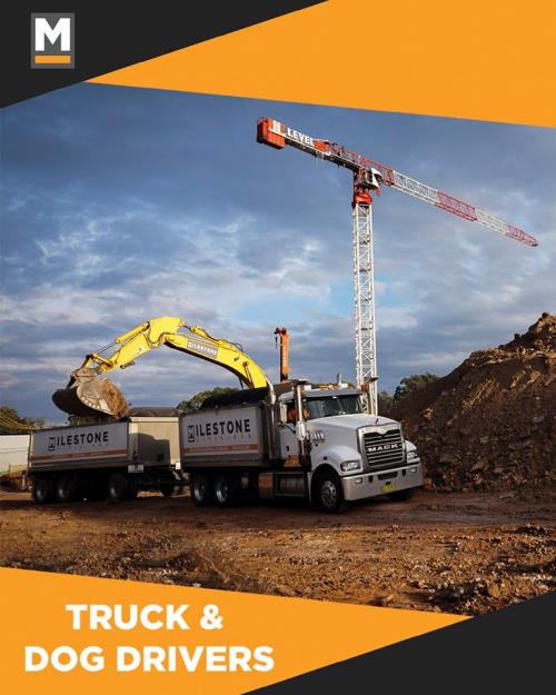 As a truck driver for Milestone Civil you will be driving various vehicles from the Milestone Fleet, primarily driving a Truck with Dog trailer.