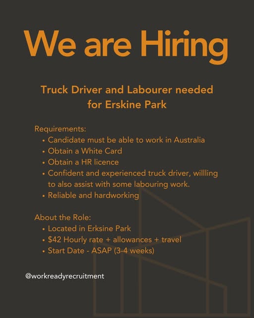 Truck Driver and Labourer needed for Erskine Park