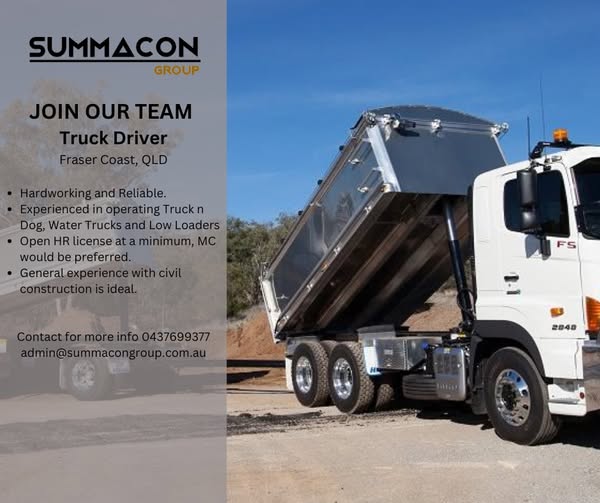 Truck driver wanted for civil construction work in Fraser Coast, QLD; experienced truck operation and open HR license required.
