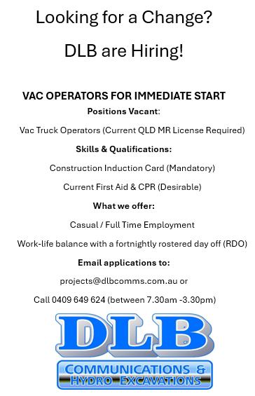Casual/Full-time Vac Truck Operators needed with QLD MR License, offering work-life balance and RDOs.