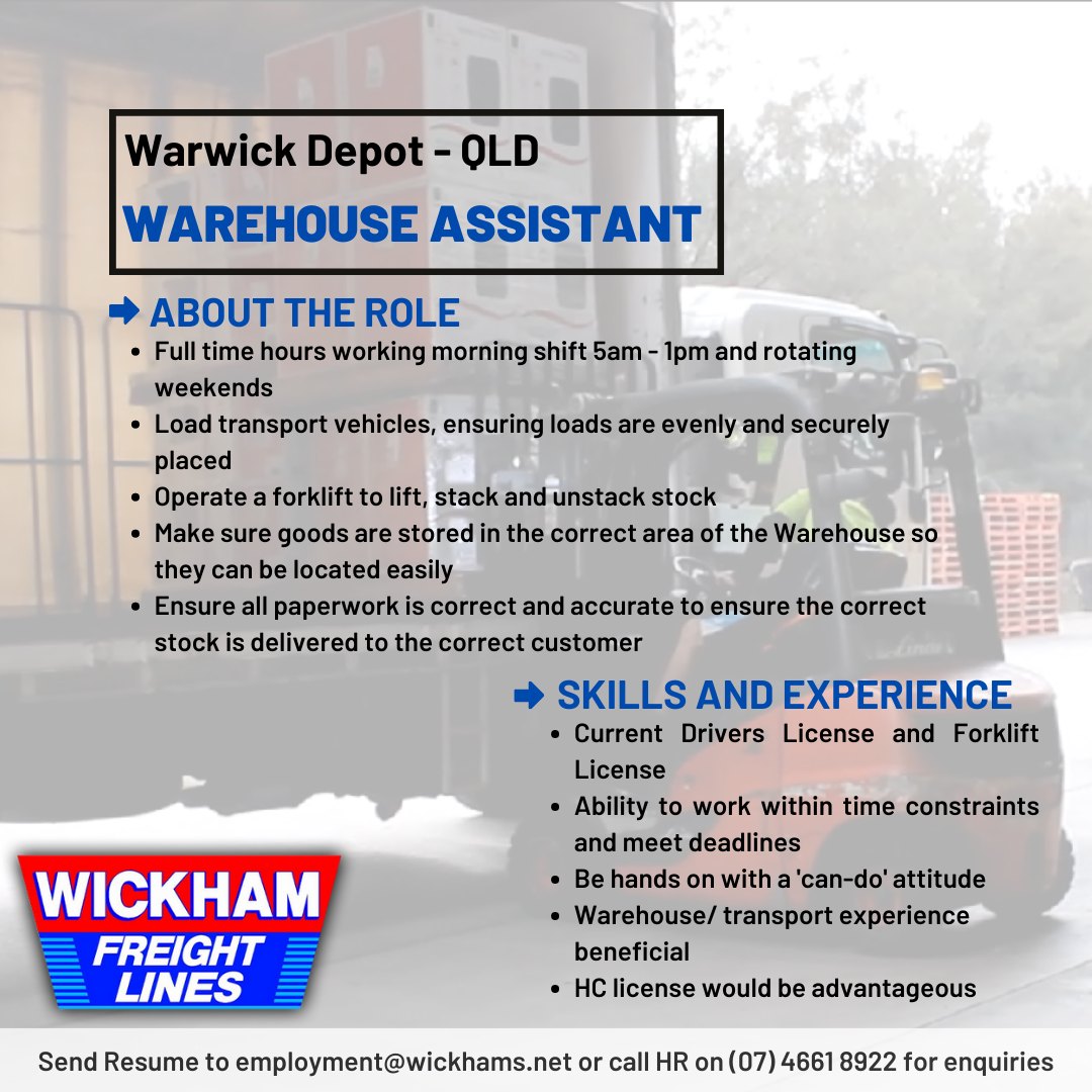 WAREHOUSE ASSISTANT-29466 ( Wickham Freight Lines )