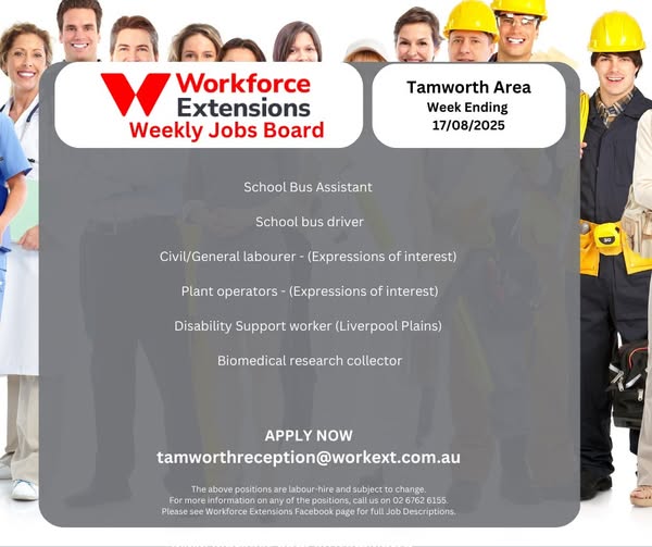 "Join Tamworth's workforce as a school bus driver, civil labourer, or biomedical researcher collector, supporting local communities and industries."