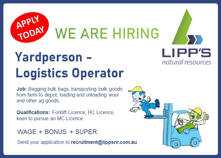 Job Tags:APPIN, ForkLift (LF), HC Licence, Lipp's Natural Resources, MC Licence.