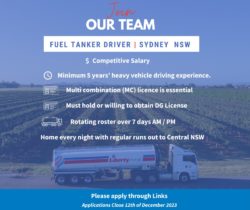Fuel Drivers NSW HC or MC Licence required · Dangerous Goods – Bulk Liquids · Rotating Shifts · Highly competitive rates Whilst majority of our fleet will be based at Padstow, we may have opportunities to base trucks out of Botany as well. To be successful for these roles, you must be open to accommodate a […]