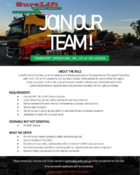 Still looking for a suitable candidate to join our team! If this is you, send your resume and expression of interest through SureLift Crane Hire Responsibilities of the Fleet Controller position, such as maximizing fleet performance and collaborating with operations teams. The successful candidate will be required to work on-call and must have strong communication […]